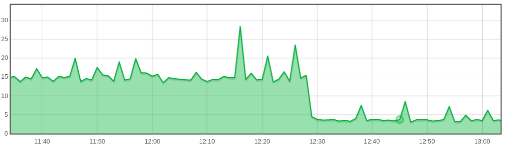 CPU usage on a live Cloud Container server dropped by around two-thirds when changes were applied.